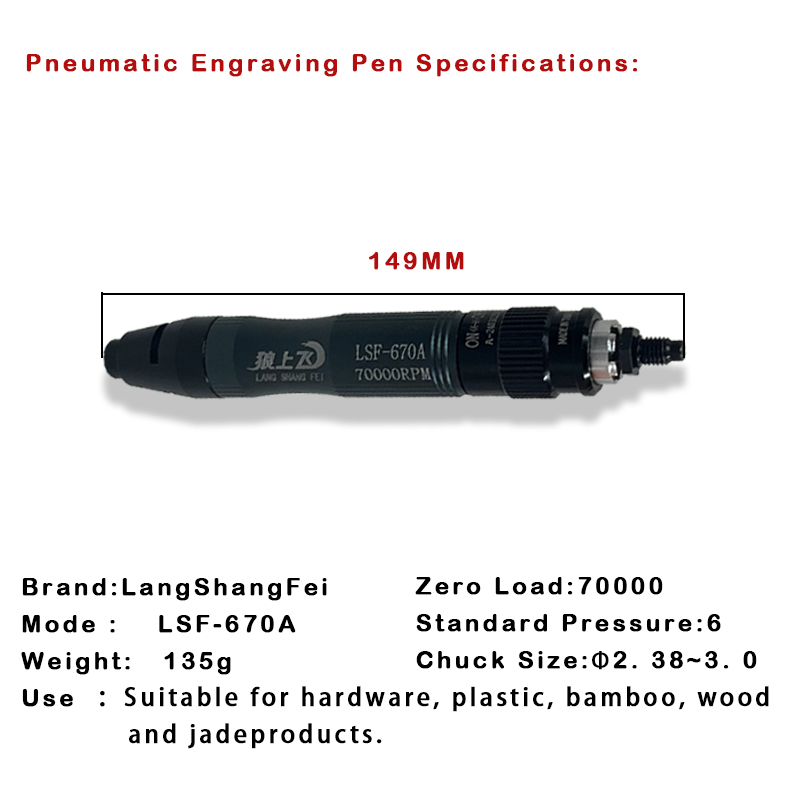 The "engraving pen" is a small tool driven by the principle of aerodynamics, which is usually used for fine cutting, grinding and engraving work. It usually consists of a handle holding the pen tip and a mechanical component driven by compressed air.